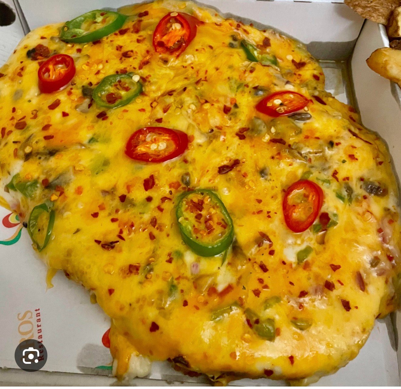 Pepperoni, Red Peppers, Red Onions, Green Chillies